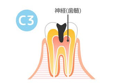 もし歯の保存が可能であれば、C3と同様に根管治療を行い、その後、土台を立てて被せ物を装着することで歯の機能回復を目指します。