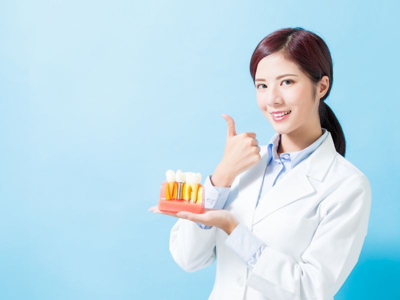 ご来院時には、インプラント周囲の歯ぐきの状態や、噛み合わせの確認、そして専用の器具によるプロフェッショナルクリーニングを実施します。また、ご自宅での適切なセルフケア(ブラッシング指導など)も、インプラントを長持ちさせる上で非常に重要です。やわらかめの歯ブラシを使用し、力を入れすぎず丁寧にブラッシングすること、歯と歯の間はフロスや歯間ブラシで清掃すること、仕上げにデンタルリンスを使うことなどで、インプラント周囲の清潔を保ち、トラブルを未然に防ぎます。