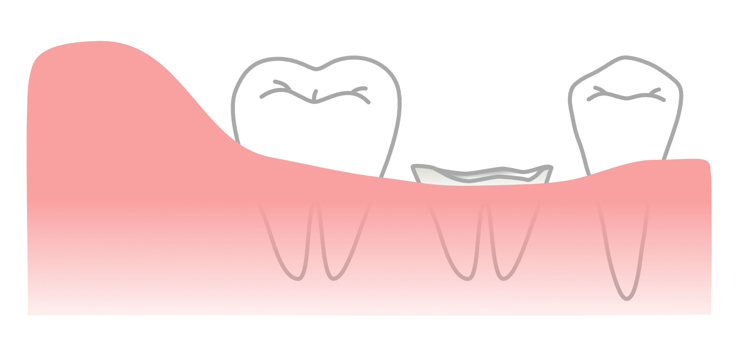歯冠長延長術は、むし歯や歯の破折で歯ぐきの下に埋もれてしまった歯を対象とした外科手術です。セラミックなどの被せ物(補綴物)が安定して装着できるように、歯ぐきや骨の形を精密に整えます。